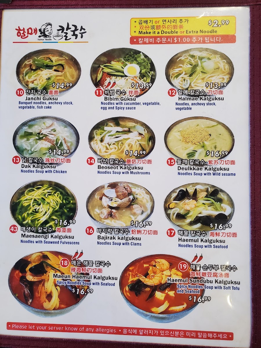Halmae Noodle 할매칼국수, located at 413 Broad Ave, Palisades Park, NJ, is a charming Korean restaurant that brings homestyle dishes to the heart of the community. Known for its hearty and flavorful offerings, the menu features a delightful selection of noodles and dumplings.